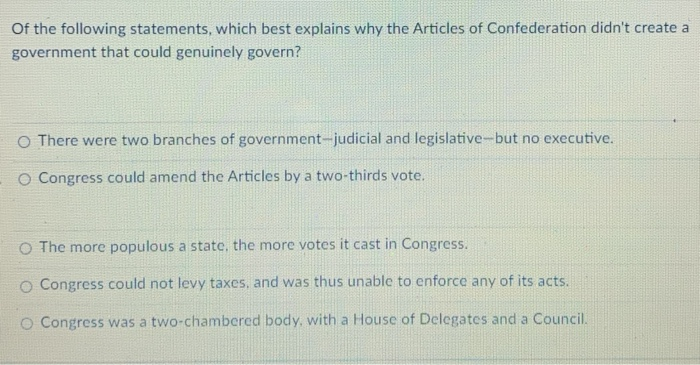 Solved The Articles Of Confederation Created A Confederate Chegg Com